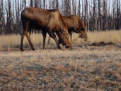 "Part of my job is insuring that moose and people coexist peacefully. The moose seem to know the rules. It's the people we have to keep reminding. Terry." [Photo taken at Ft. Greely]