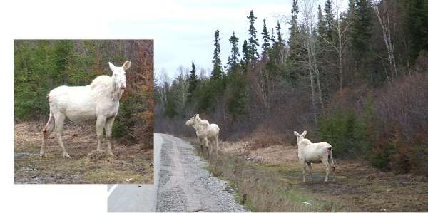 "Here are photos of an albino moose in Foleyet, Ontario. Mark."