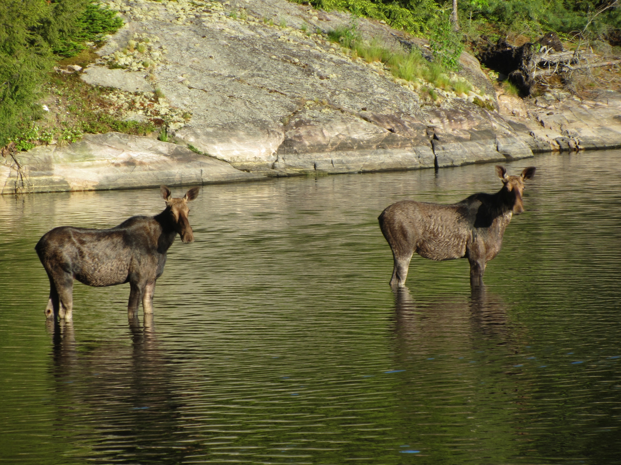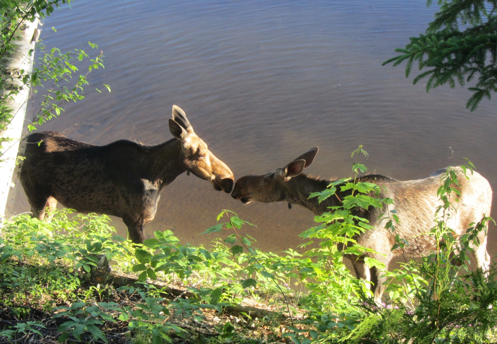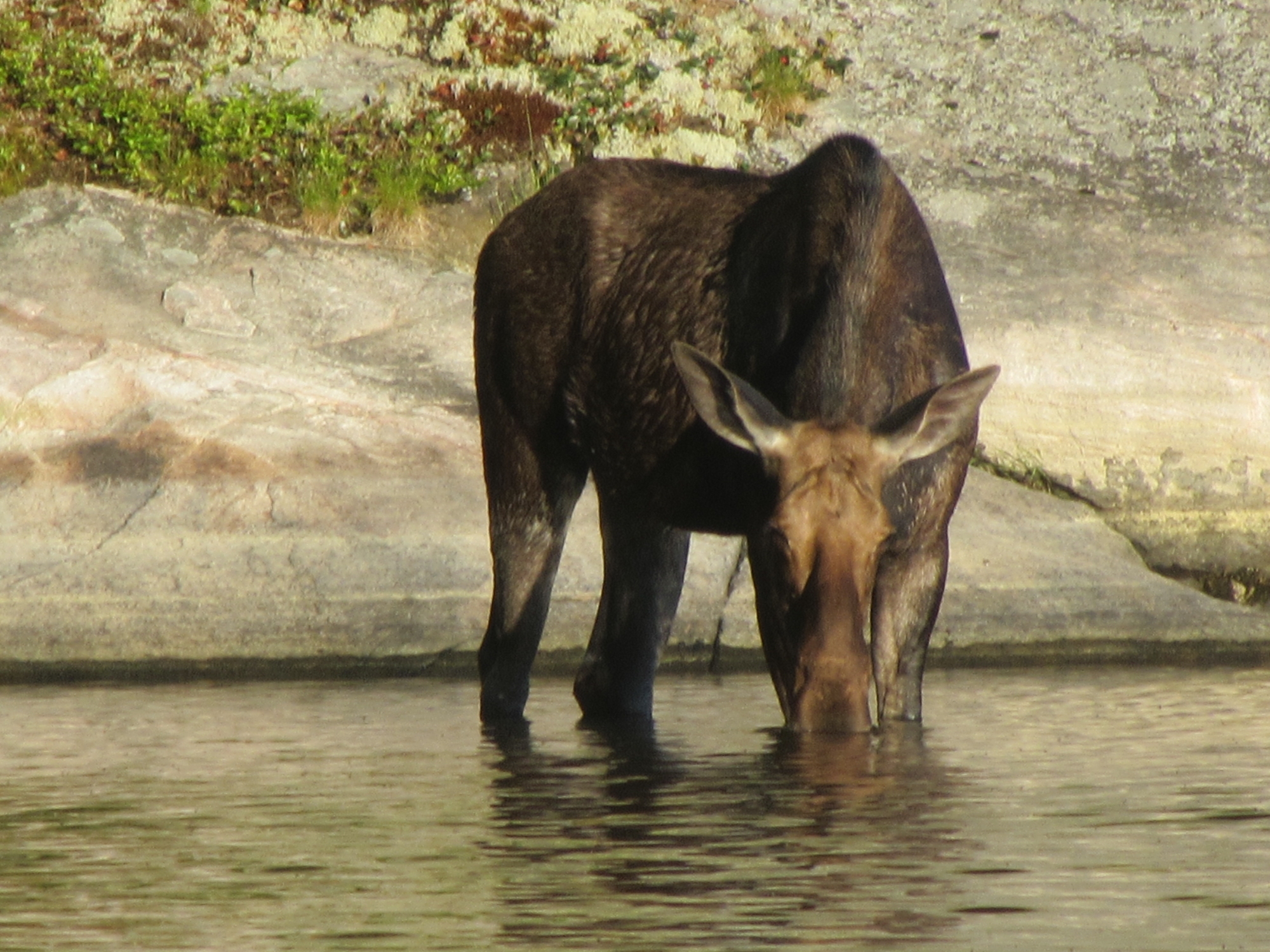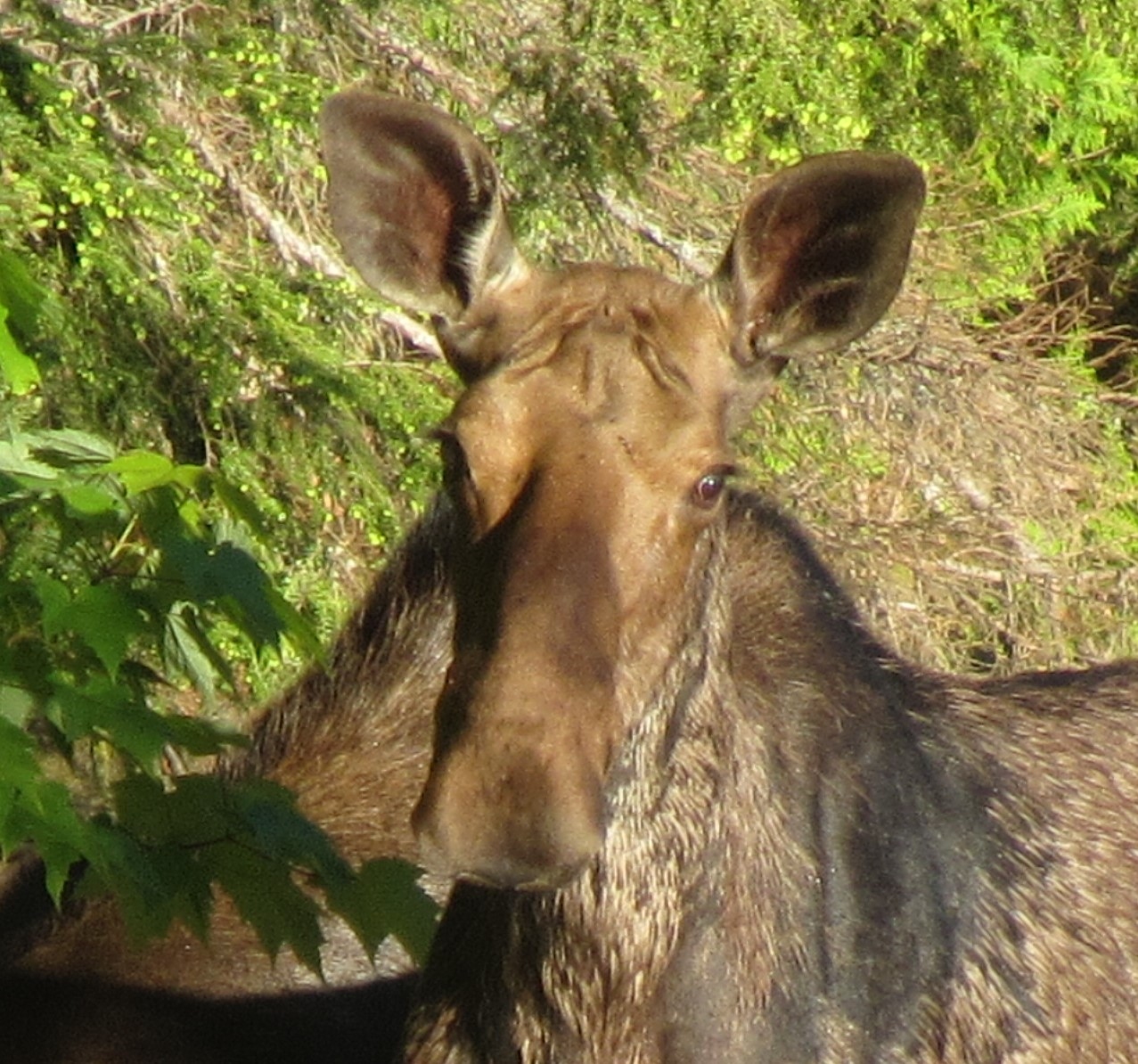 "We had it in our minds to find and view a moose along the infamous Highway 60 (the parameter of Algonquin Park, by Huntsville, Ontario, Canada). Last year on vacation in the area we drove, we hiked and all to no avail in finding or viewing our big funny-looking friend. We did however learn some tricks of the trade from the learned locals. This year it took two long, long trips at the end of May (with the salt melted from the snow on the side of the roads in the ditches) and at dusk (about 8/9pm) to finally see some moose!