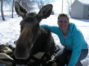 "We have been getting a lot of snow in Idaho Falls this year. A momma and baby moose found their way into the back yard a couple of weeks ago. Fish and game tagged their ear and moved them. It will be interesting to see if they show up again next year. They pruned all of our fruit trees. They ate all of the apples and pears that were left for the birds. We miss seeing them in the back yard. I have to say it was one of our "favorite" things. Laurette."