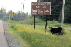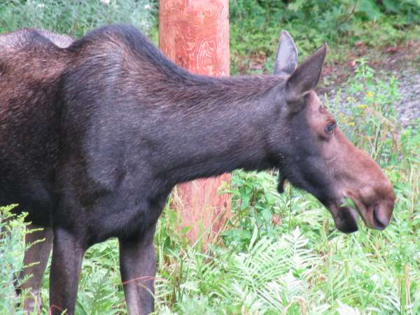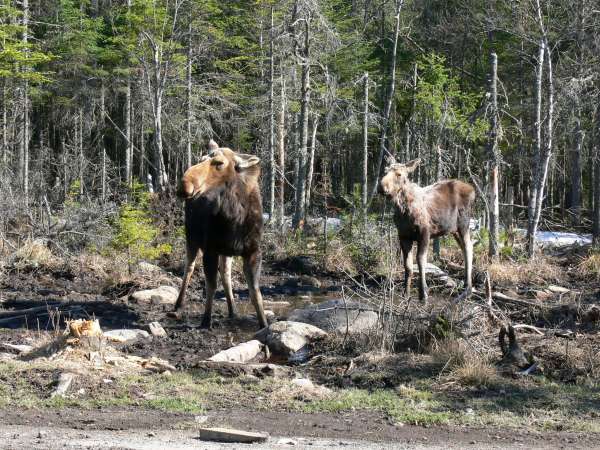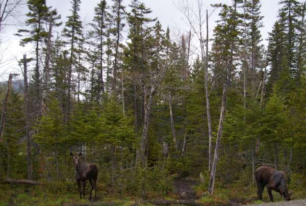 "My daughter and I went camping in northern New Hampshire. We stayed at Lake Francis State Park in Pittsburg. Most of our moose sightings were along Rt. 3, known as "Moose Alley." We hiked Maggaloway Mountain and saw many moose prints at the base of the mountain trail, but we could not find any moose. In all, we saw 25 moose in our four day stay. Needless to say, it was our best camping trip to date—thanks to the moose. We kept our distance from the moose; all pictures were taken with a 100-300mm zoom lens. Thanks and keep up the good work. The site is awesome. Kevin and Sarah."