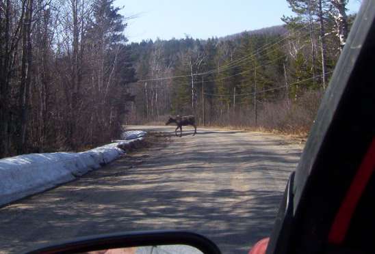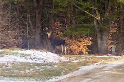 "I saw this moose today on York Pond Road on the way to the Berlin fish hatchery. Holly."