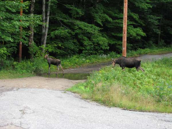 "We took these photos of a mother and her baby while traveling up route 302 in the twin mountain area this past week. We were practically able to drive right up to them. It is the first ever moose sighting for me. We live in Massachusetts and were vacationing. Mike."