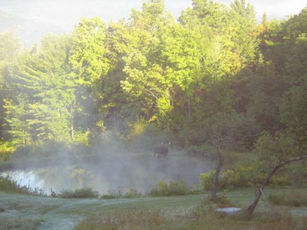 "My wife and I live in Granville and often are visited by cows and bulls and their offspring. Our swimming pond is a favorite spot for one bull in particular. Since we share this idyllic spot with these beautiful animals we decided to call our home 'Moose Hollow.' John."