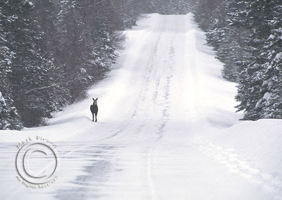 Photographing moose in the winter months requires a great deal of preparation and hard work. The photographer must do his/her homework concerning moose behaviors and be familiar with moose track and sign as well. Proper attire and gear in the winter months are always issues, and to quote a famous L.L. Bean saying; "There is no such thing as bad weather, just bad clothing!" Snowshoes, a camera backpack, and a sturdy tripod are all a must. Combine all these elements with a healthy dose of good luck, and you just might come home with great moose images!