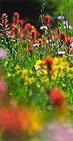 The picture was taken on Fuji Velvia - still the most colourful slide material I know. Just perfect for such motifs, and not replacable by digital photography (yet?). The special effect of this picture is derived from a limited depth of field showing the front-most flowers blurred as soft colour spots only .