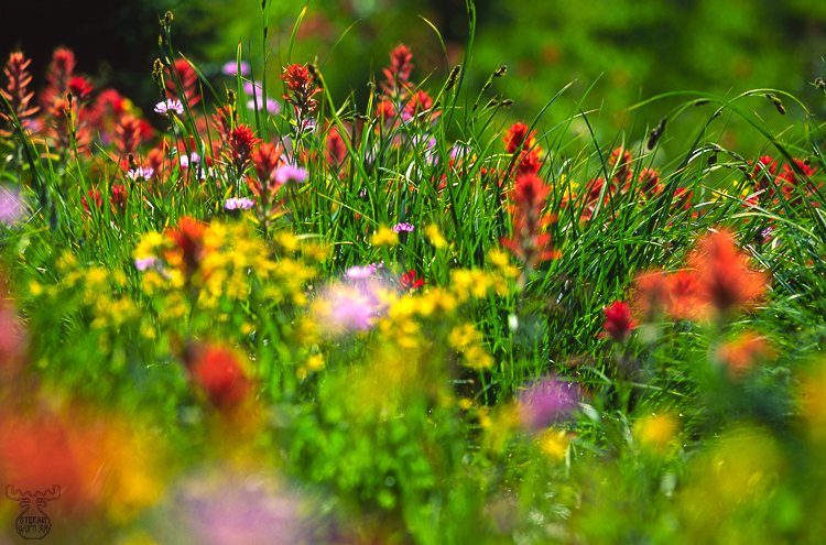 It was taken in British Columbia/Canada on Mount Revelstoke in August. Just a few weeks before the last snow vanished, and within a few days a variety of species with a vast amount of flowers appears on the mountain meadows. In dips still snow and ice are kept for a long time, but on the sun-exposed meadows the warmth gives way to a short period of growth and life.