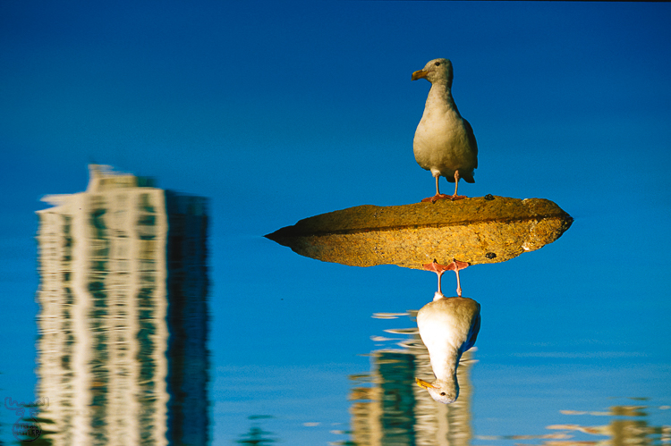 This Glaucous-Winged Gull (Larus glauescens) was sitting in fair distance at Lost Lagoon in Vancouver, Canada, when I had some hours strolling around at this wonderful scenery (my wife was just jogging in the area, possibly not ably to sustain my extensive film dissipation in such environment :-)