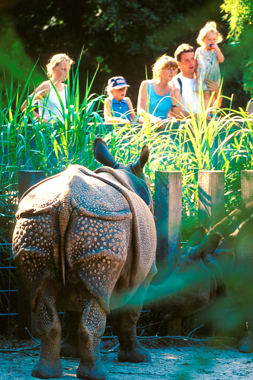 Usually my intention in those zoo visits is to enjoy the different species exhibited, take my time and ... some pictures - of the animals ! This special viewpoint offered another scene: The visitors on the other side of the enclosure looking enamoured to some Rhinoceros not visible in the picture, while a colleague of him seemed to stare in the families' direction.