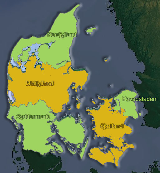 The countries only land connection is Germany in the South. Denmark is bordered on the west by the North Sea and on the east by the Baltic Sea. To the North, separating Denmark from Norway and Sweden, are the Skagerrak and Kattegat straits. The small countries biggest area is the Jutland peninsula. Also 500 islands belong to the country, of which around 100 are inhabited. On the largest one - Zealand - Denmark's capital city Copenhagen is situated with around 1.5 Million living in, forming the largest city of Scandinavia. It is a flat land of woods, beaches and heather-moors, highest elevation is the Yding Skovhøj with just 173m. |