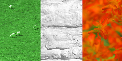 The colors of the Irish flag represent the new-earned freedom of religion in the Irish free state, where green stands for the Catholics, orange for the Protestants and white for the peace between them. The flag was established around 1922 after the civil wars, when the free state was founded. The pictures in the flag left represent three typical Irish things: The omnipresent green, mottled with sheep; the white of a traditional cottage; the orange of the Monbretia bush. |