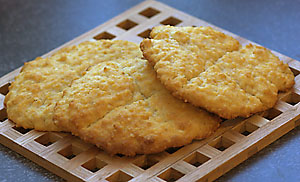 "rated break points" after baking). Turn the oven off. You might leave the oven door ajar for some more minutes making the oatcakes more crispy on the surface - turning them in the warm oven after some minutes crisps them up on the bottom side as well. |